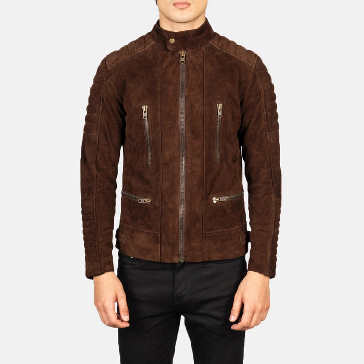 Men Suede Brown Leather Biker Jacket